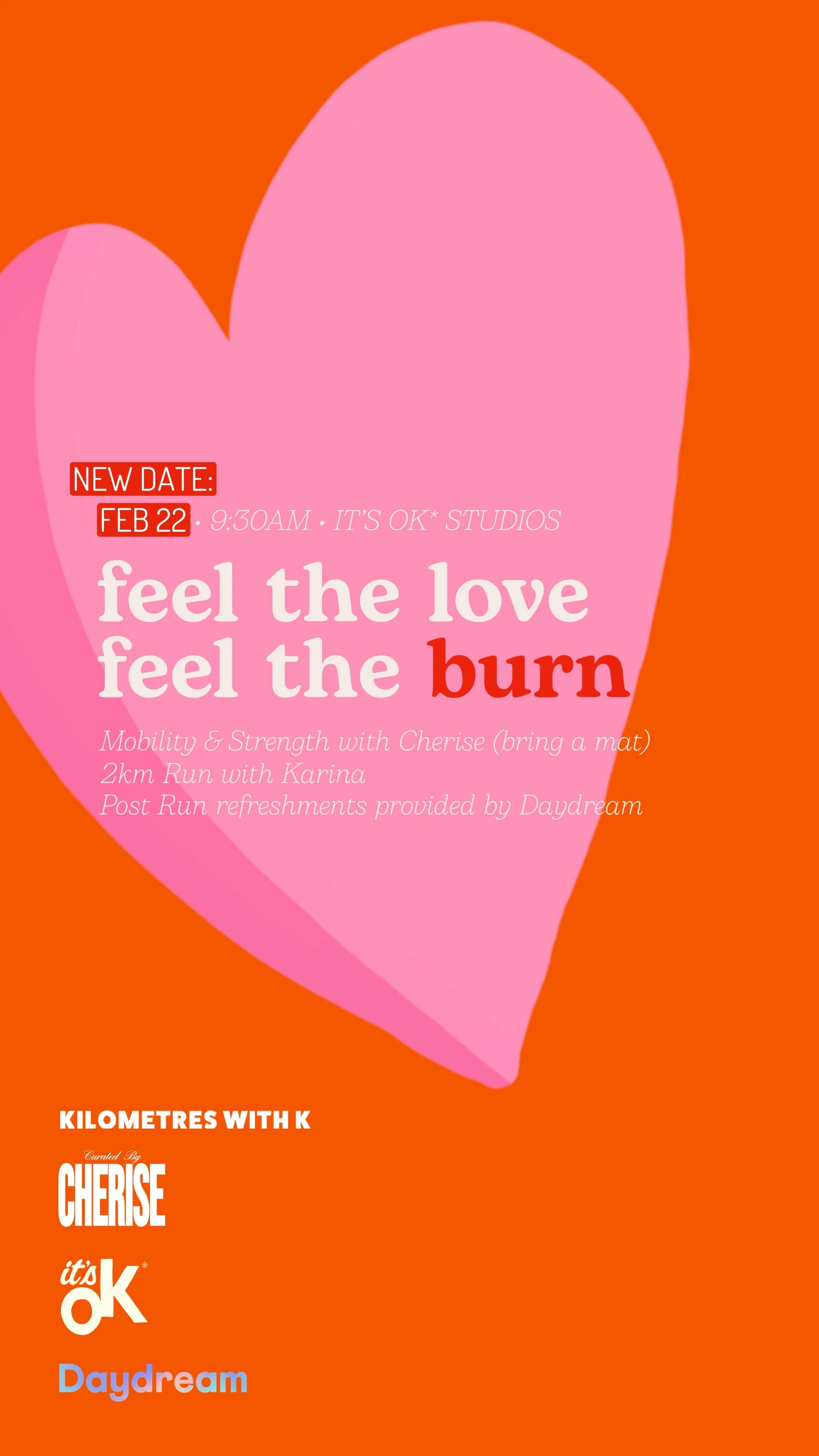 In the spirit of Valentine’s Day, we’ll be celebrating self love with a run focused Mobility & Strength program by Cherise followed by a 2KM with K.